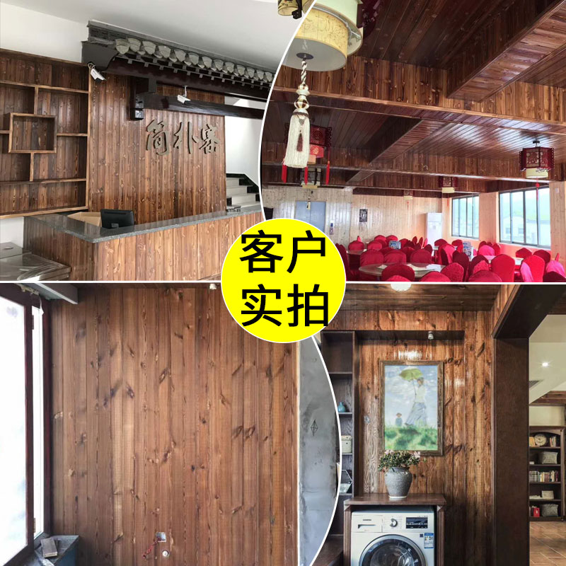 Deep carbonized buckle board sauna wall reliefing solid wood black ceiling anti-corrosion wood anti-corrosive wood pine burning wood