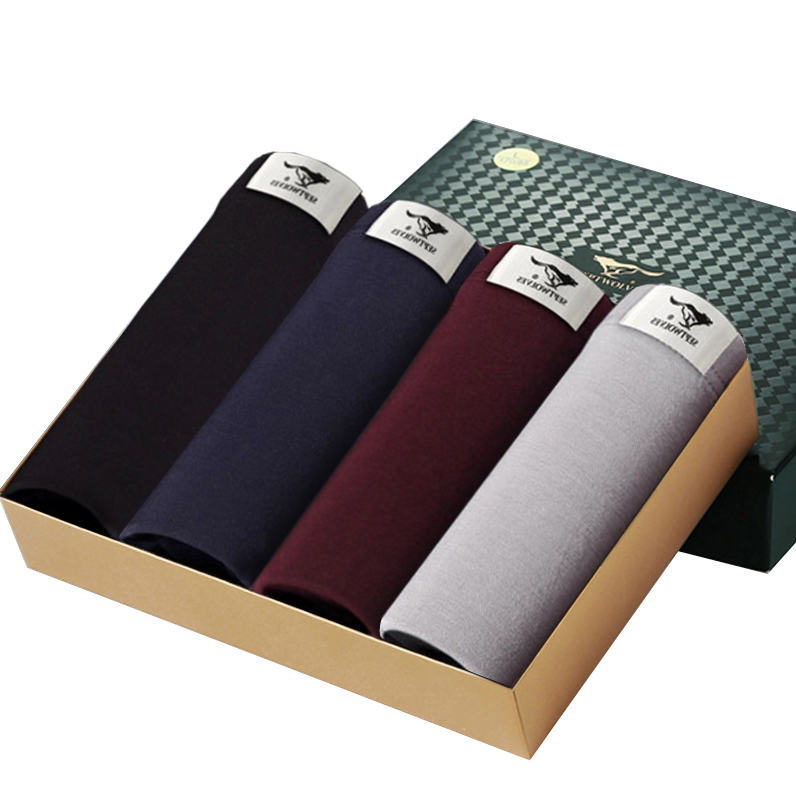 4 Boxes Loaded With Seven Wolves Men's Underwear Four-corner Pants Modale Youth Loose Comfort Shorts Four-corner Pants Elastic