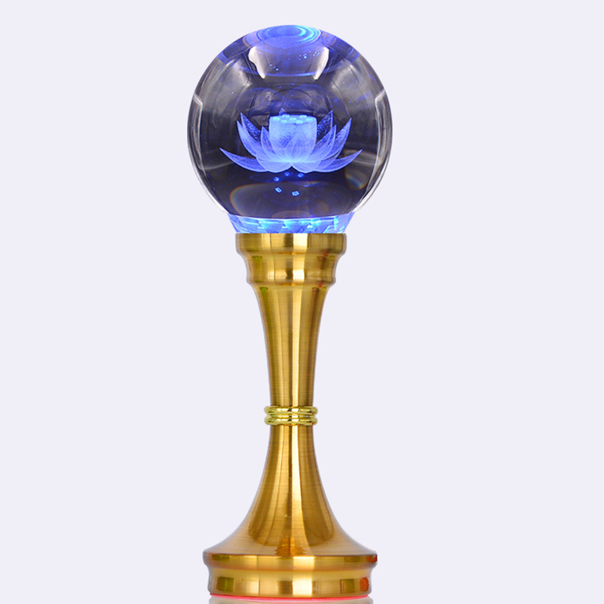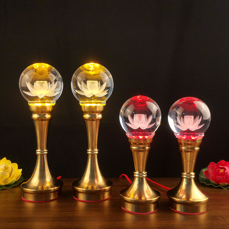 Projection crystal glass lotus lantern eternal light household Buddha offering lamp LED colorful Buddha lamp for lamp charging Buddhist hall lamp