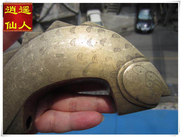 (Carefree Fairy) Late Qing yellowing big fish bronze lock and not old bag retreat