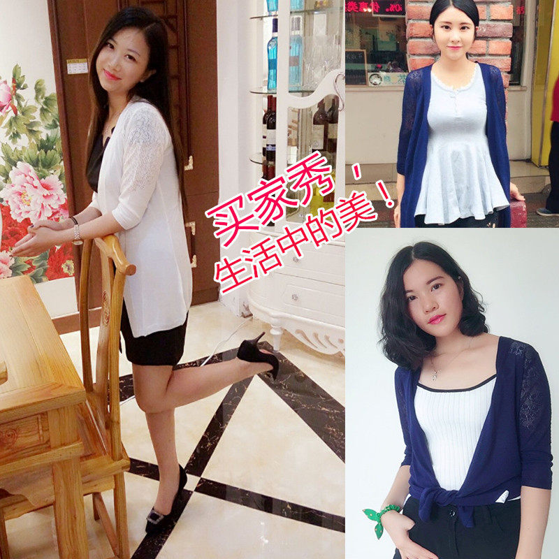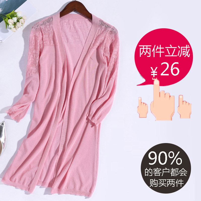 Dynamic Gothic Medium Long Version Knit Cardiovert Shawl Thin Summer Ice Silk 70% Sleeve Sunscreen Air Conditioning Hollowed-out Women's Jacket