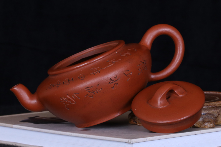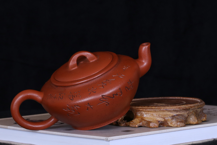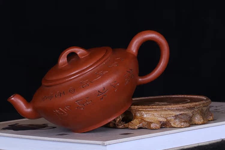 Taiwanese returning old purple sand pot, famous master Gu Jingzhou early hand-made vermilion-engraved acacia pot