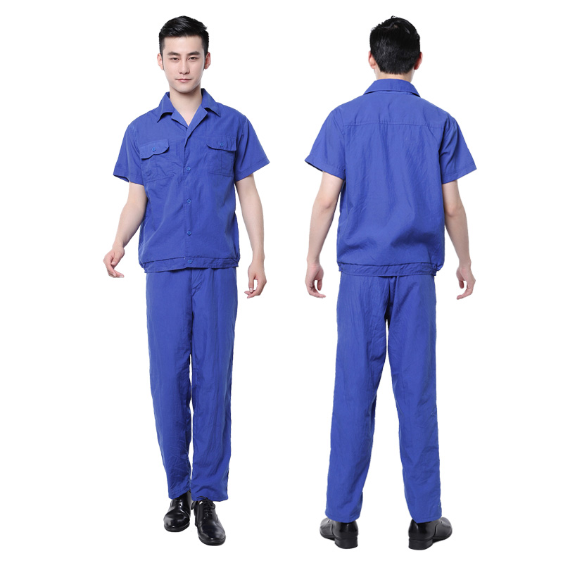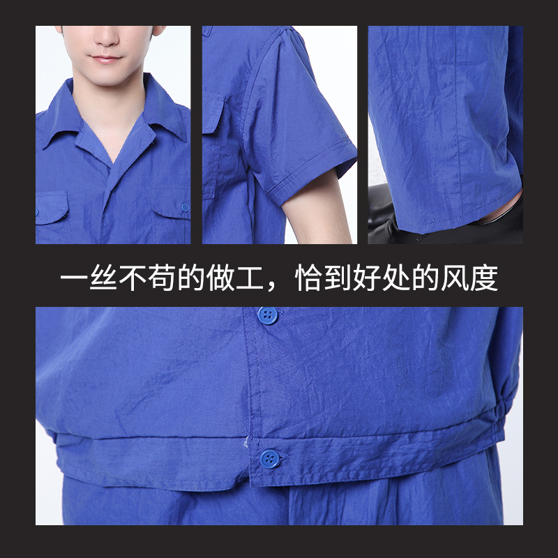 Summer Workwear Custom Bao Blue Washed Cotton Short Sleeve Suit Men And Women Short Sleeves Tooling Factory Cleaning Steam Repair Work Clothes