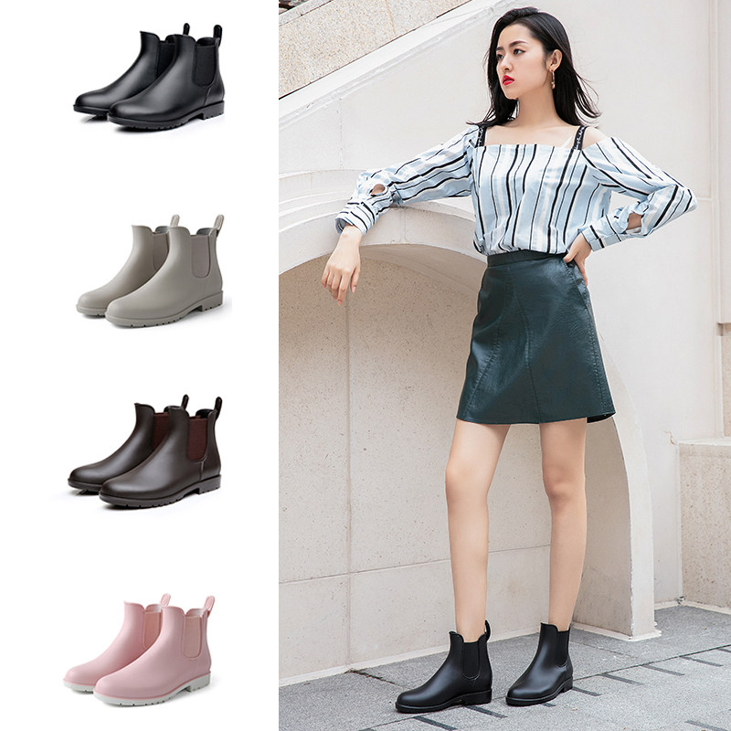 Rain Shoes Lady Thickening Short Drum Rain Boots Chelsea Non-slip Waterproof Rubber Shoes Fashion outside wearing Japanese Casual Water Shoes-Taobao