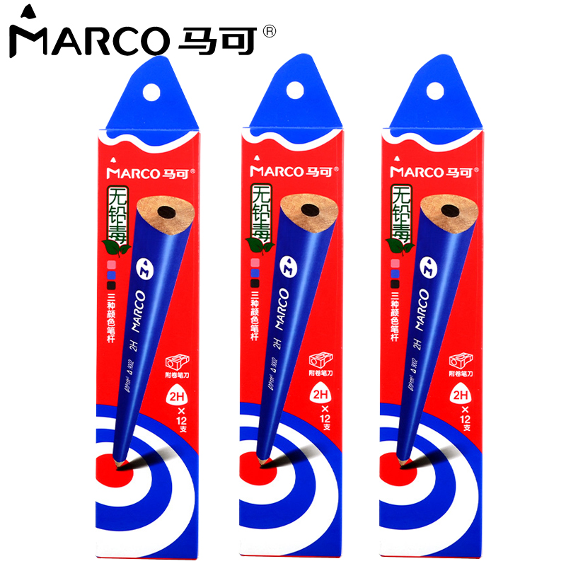 Marco HB 2B Written Words Pencil Triangle Hexagonal Rod Children Sketch Painting Safety No Lead Poisoning Elementary School Students 2 Ratio Exam Pencil Kindergarten Trigone Corrective Grip log 3 boxed