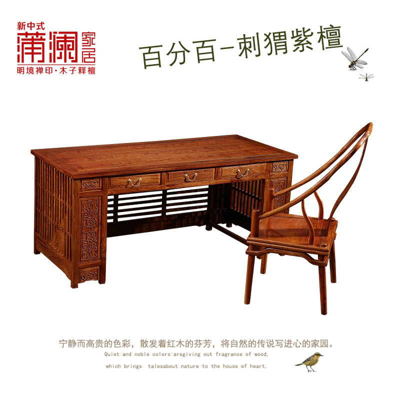 Guochao New Chinese desk Hedgehog Purple Sandalwood Rosewood Log Solid Wood Red Wood Book House Full Dress Su Pear Kyocera Furniture