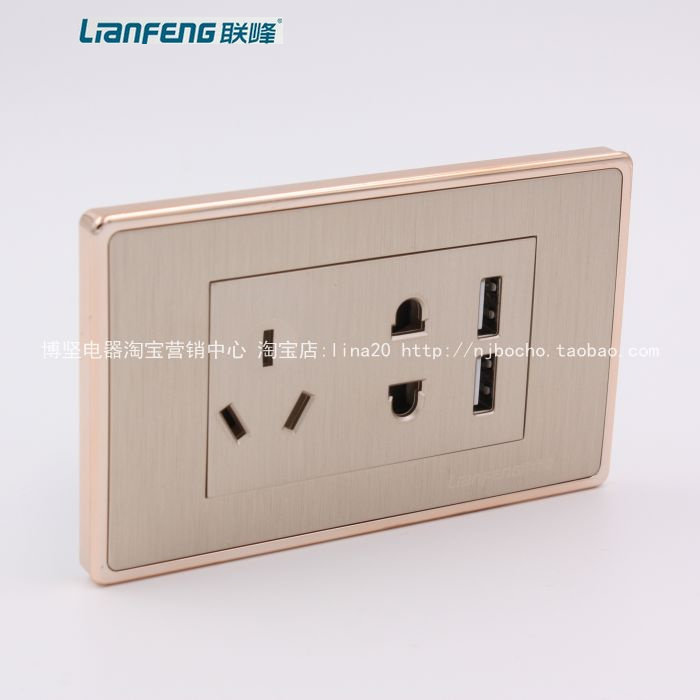 Lifeng 118 Type USB Plug Golden Wire Drawing Five Holes Plus USB Five Holes USB Five Eyes With 2 Bits USB Charging Socket