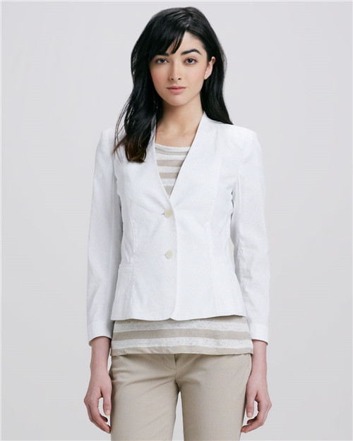 TH women's linen collarless two-button ninth-sleeve short casual small suit all-match shoulder pad suit summer