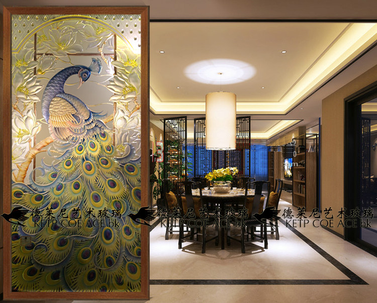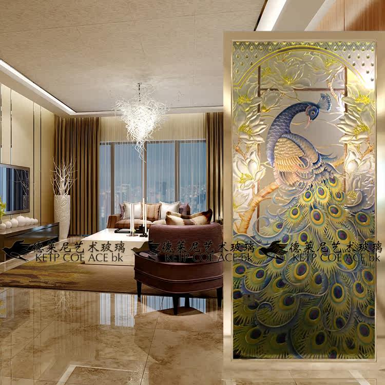 Art Glass Living Room Modern European Screen Divided Wall Background Wall Moving Door Handicrafted Tempered Phoenix