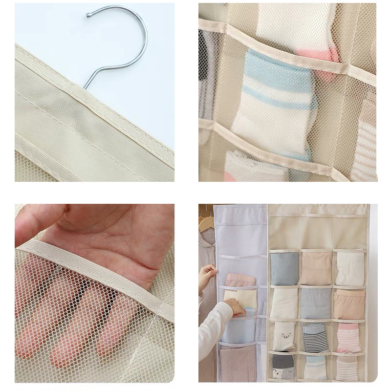 Cotton and linen multi-layer storage hanging bag Wall door rear hanging storage bag hanging pocket bag Socks washable finishing bag