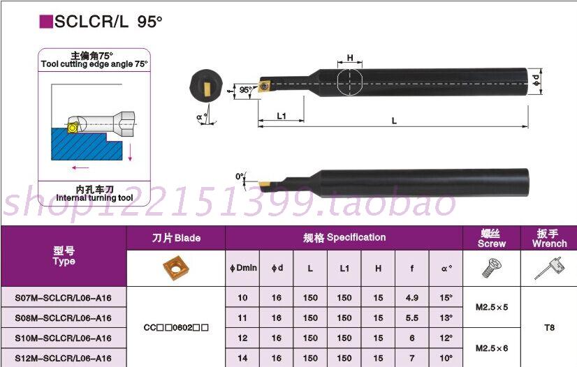 95 degree CNC size head inner hole cutter bar boring turning tool S07 S08K S10K S12M-SCLCR06-A16