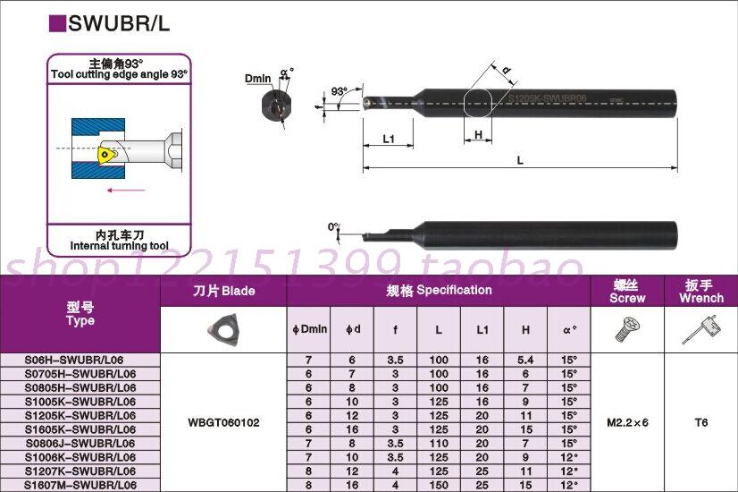 93 degree large and small hole inner hole CNC knife S1005 S1206K S1607M-SWUBR06