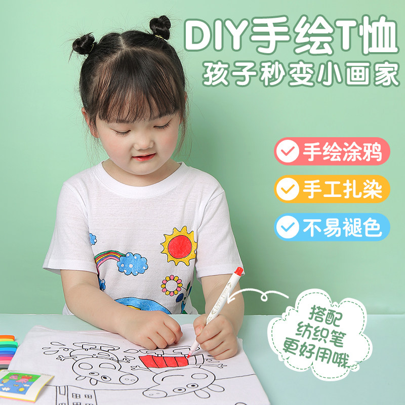 Children's painting T-shirt diy white blank hand-painted short-sleeved kindergarten creative graffiti tie-dye parent-child cultural shirt