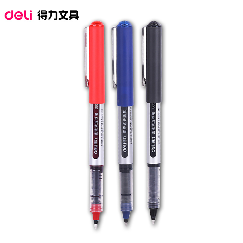 Deli S656 straight liquid gel pen water-based ballpoint pen gel black red straight liquid pen 0 5mm needle-type water-based pen student water-based signature pen ballpoint black pen test special stationery