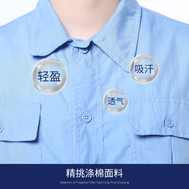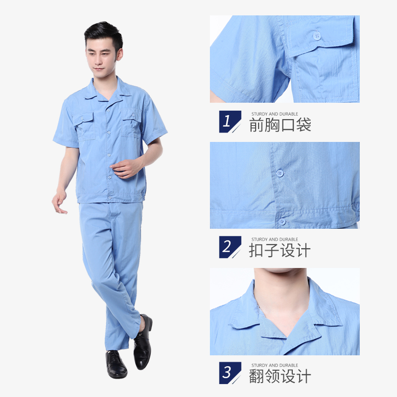 Summer workwear custom sky blue washed cloth short sleeve suit men and women short sleeves tooling factory cleaning steam repair work clothes