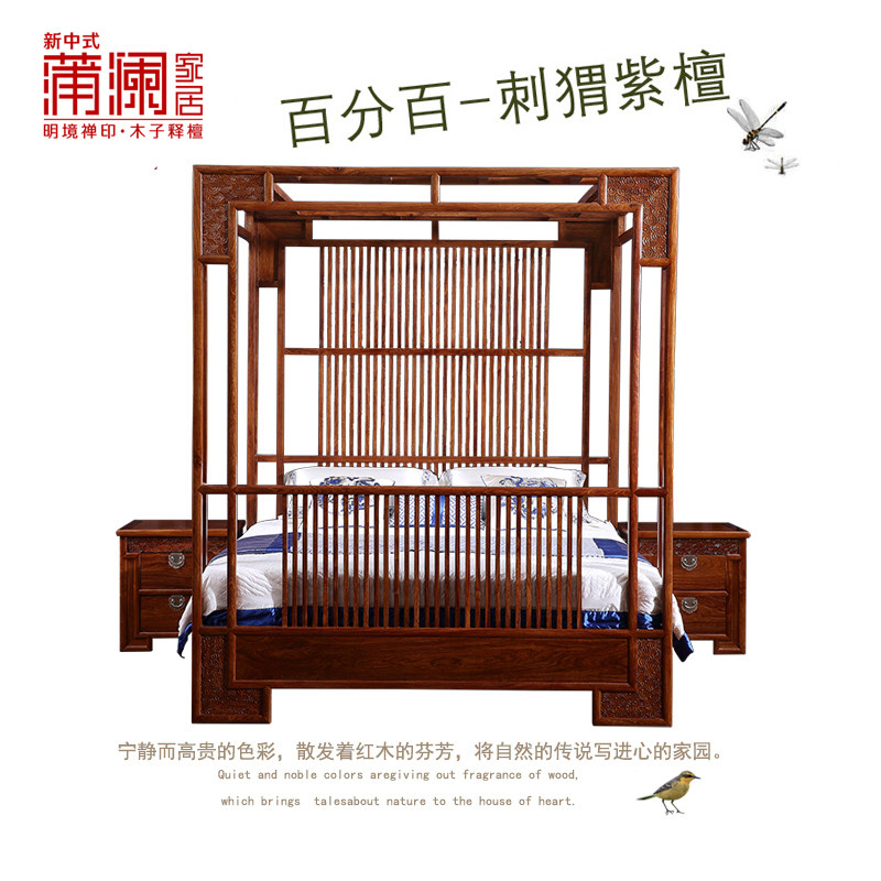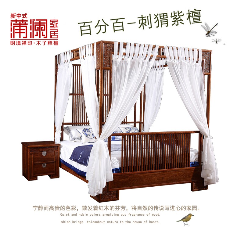New Chinese style mahogany canopy bed 1 8 meters hedgehog rosewood rosewood solid wood furniture Suli Kyocera furniture