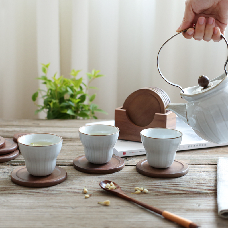 Kawashimaya Japanese-style black walnut coaster Wooden tea ceremony tea coaster top glass cup mat Coffee cup insulation pad