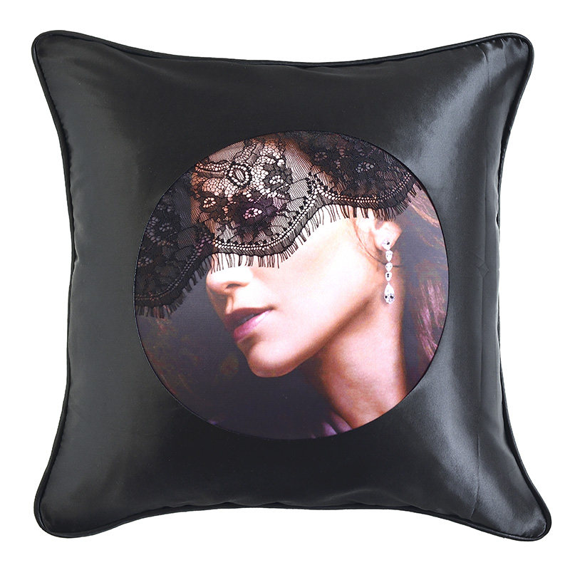 European Luxury Black Lace Print Pillowcase Cushion Cover Model Room Hotel Sofa Pillow Square Pillowcase