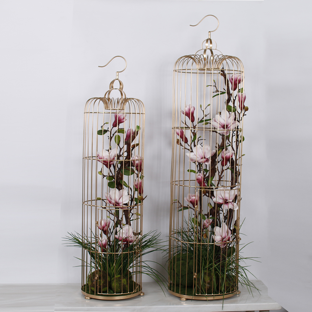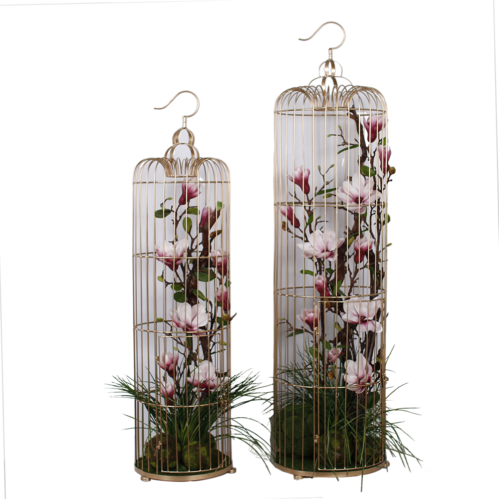 Creative Living Room Hotel Lobby Large Landing Bird Cage Large Scale Fake Flower Simulation Floral Hall Decoration Flower Pendulum