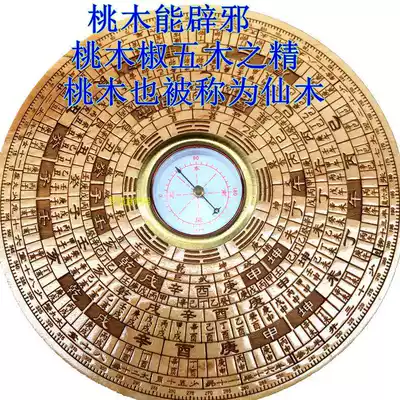 Peach Wood Feng Shui compass 3 inch round compass compass wooden ternary triple composite plate pure copper