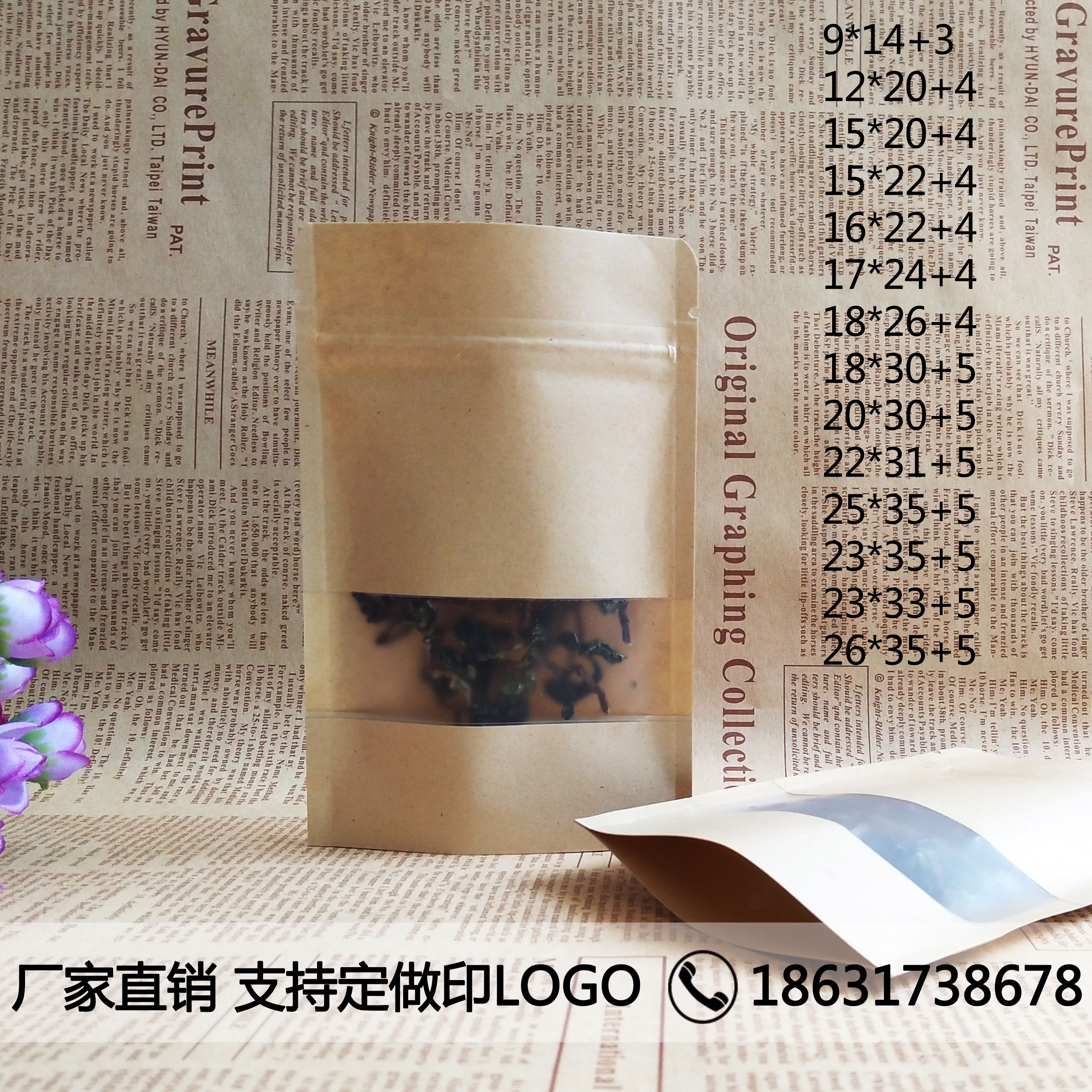 Open window kraft paper bag self-sealing bag Plastic packaging bag Sweet potato chips melon seeds tea bags Printing custom food bags