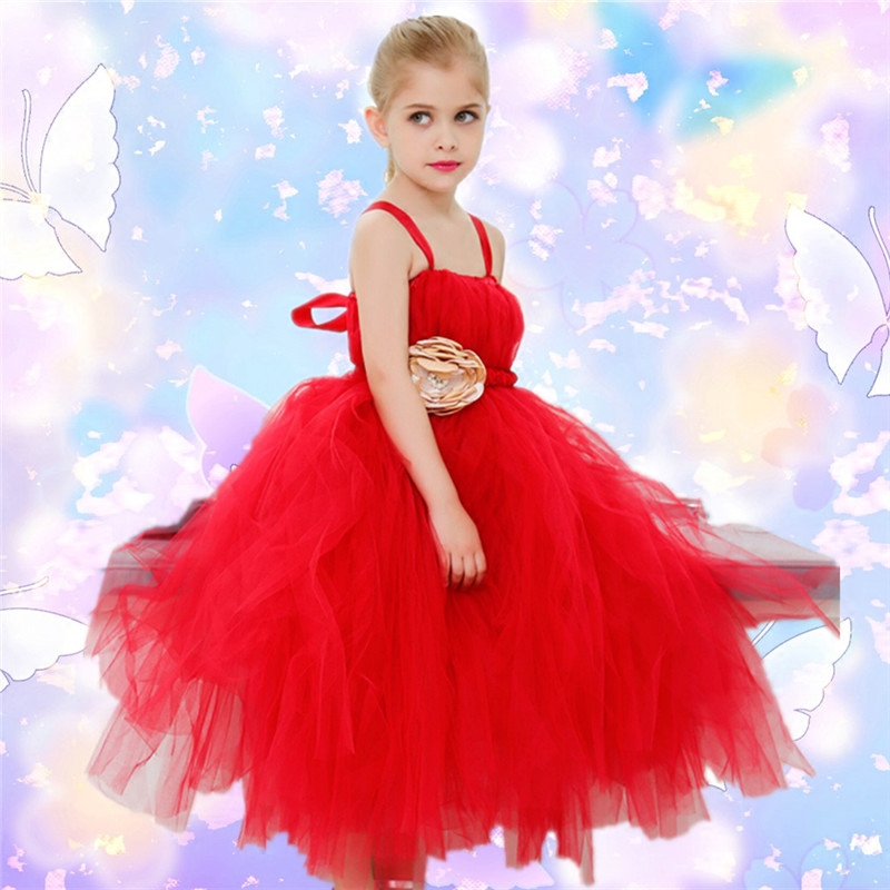 European and American long version of the dress children's web yarn fluffy skirt diy handmade dresses with skirt material bag birthday to show