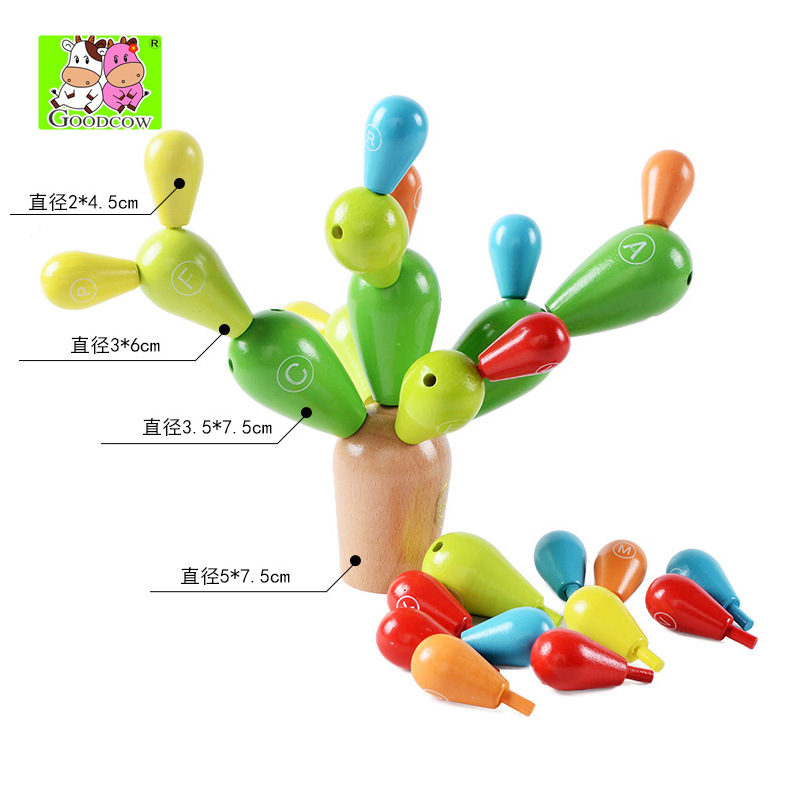 Creative blocks to dismantle cactus children early teaching Mon's teaching tools for smart wood cactus ball pairing toys