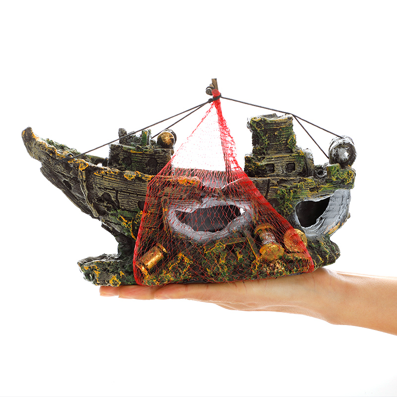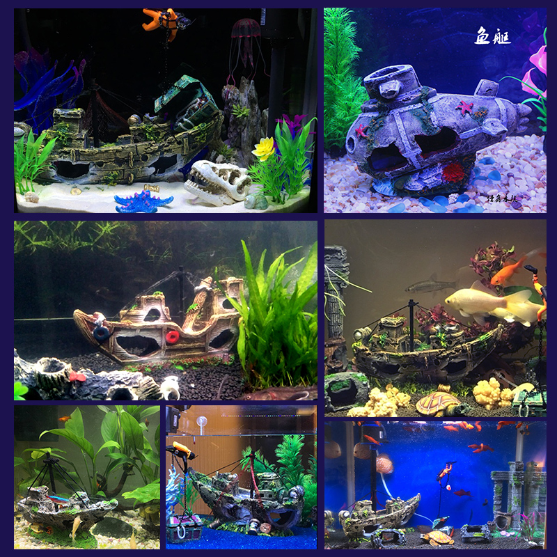 Shipwreck fish and shrimp dodge house fish tank decoration aquarium landscaping rockery stone bridge decoration simulation water grass oxygenation pump