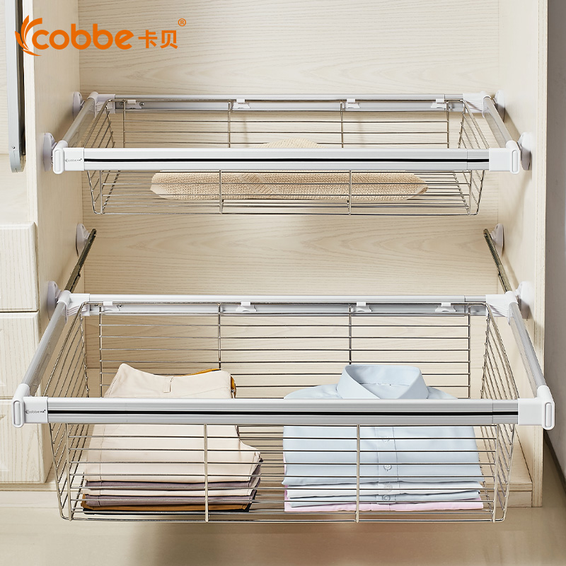 Cabe wardrobe pull basket Drawer-style cloakroom wardrobe telescopic pants rack Home cabinet push-pull storage storage basket