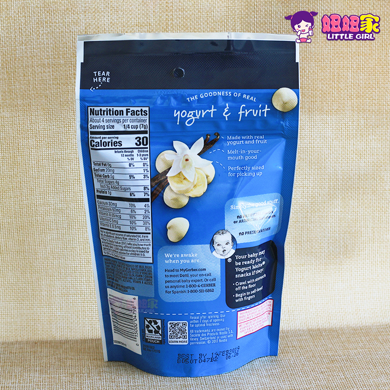 US imports Gerber Carabao Banana Vanilla Vanilla Beans Baby Yogurt Bean children Zero Soluble Beans 28g