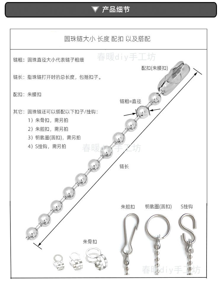 diy necklace 304 stainless steel bead chain packaging chain wave chain toy hanging chain steel ball chain tag chain