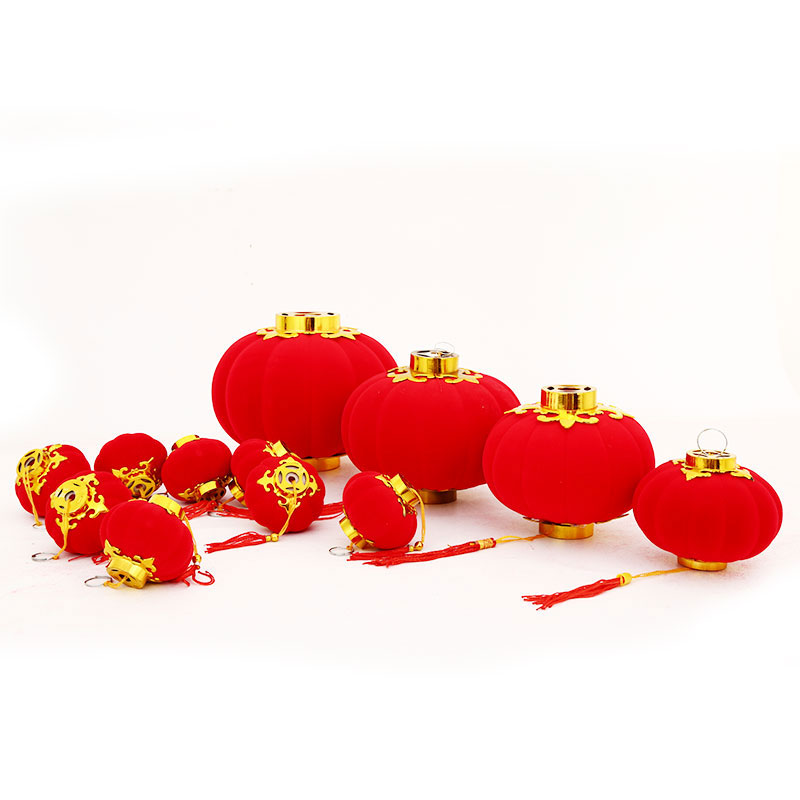 Flocking Small Red Lantern Hanging Accessories Outdoor Bonsai Balcony New Year Festive Festive festive decoration Scene arrangement Lights string cage