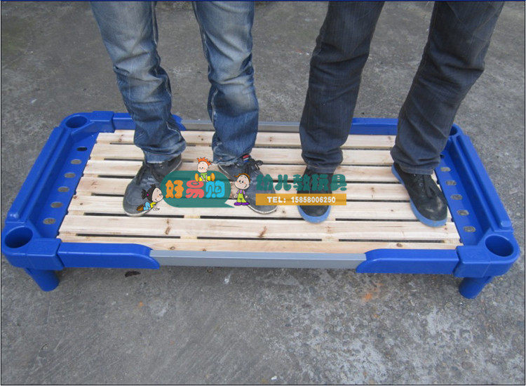 Early education nursery children's plastic unified bed kindergarten solid wood board baby single with armrest nap bed special bed