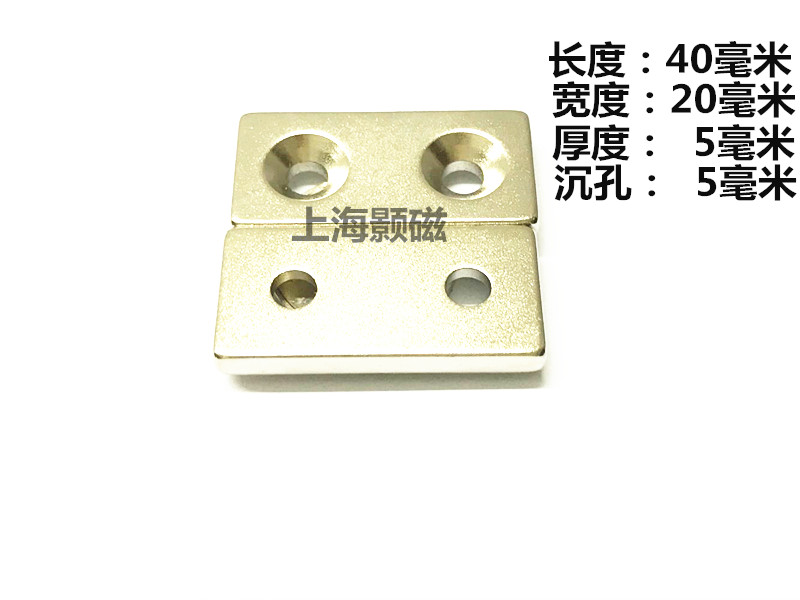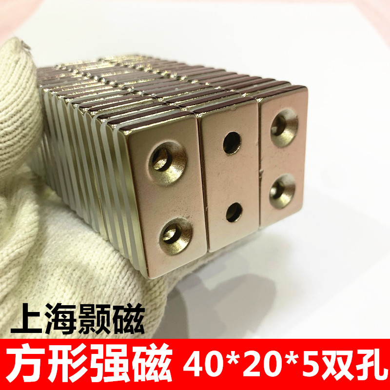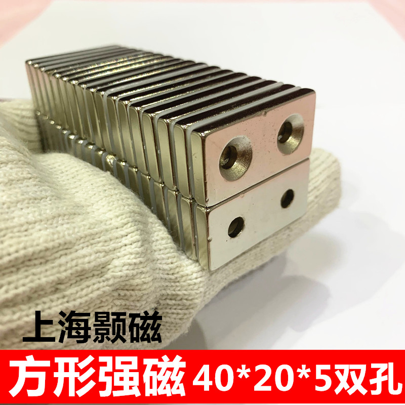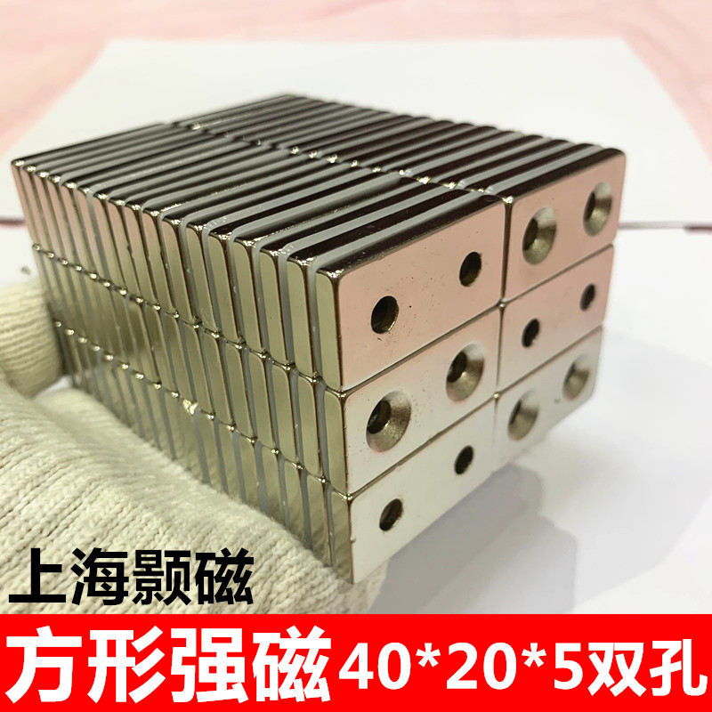 Ultra-strong magnet rectangular double hole 40X20X5MM NdFeB magnet strong magnetic steel 40 * 20 * 5mm Double holes
