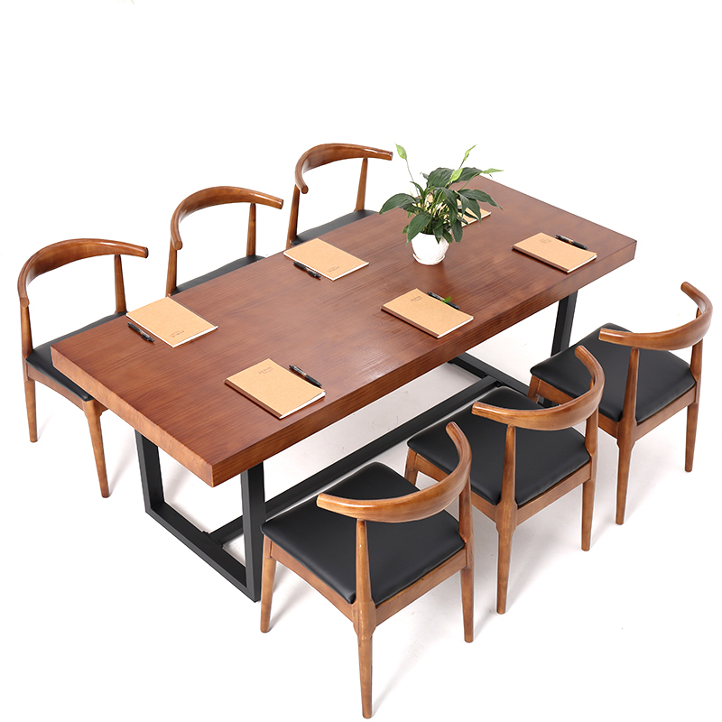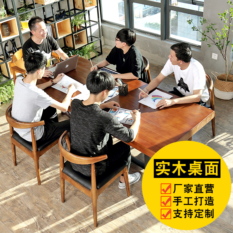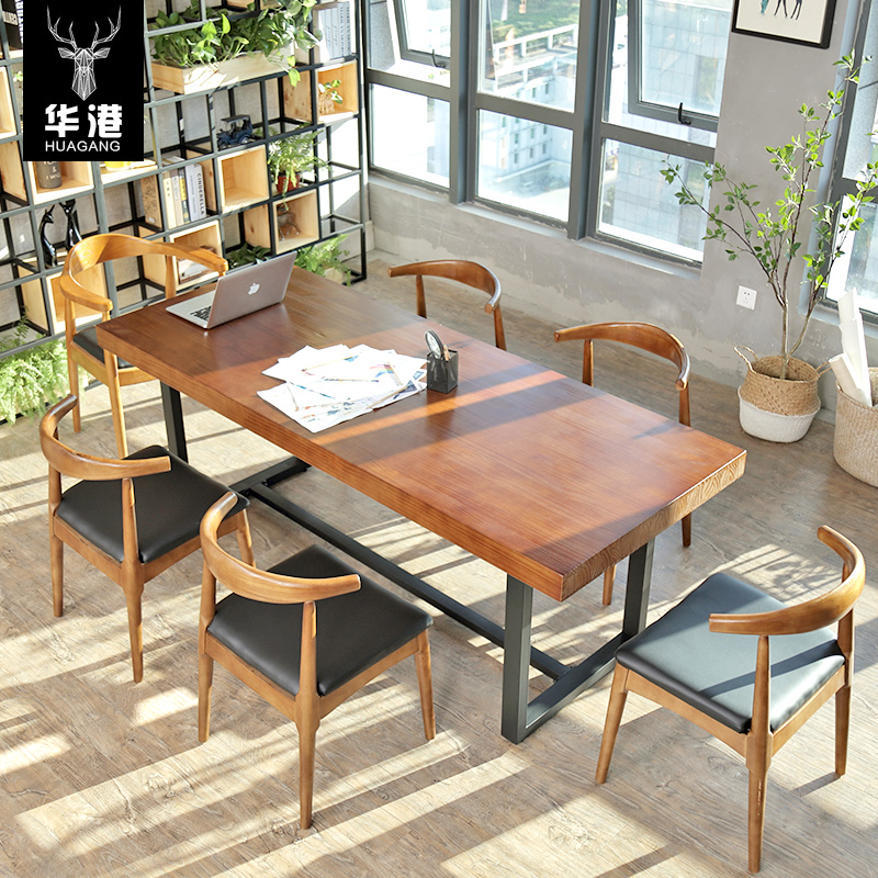 loft iron art solid wood desk meeting table strip guest table training negotiate table and chairs brief modern long table