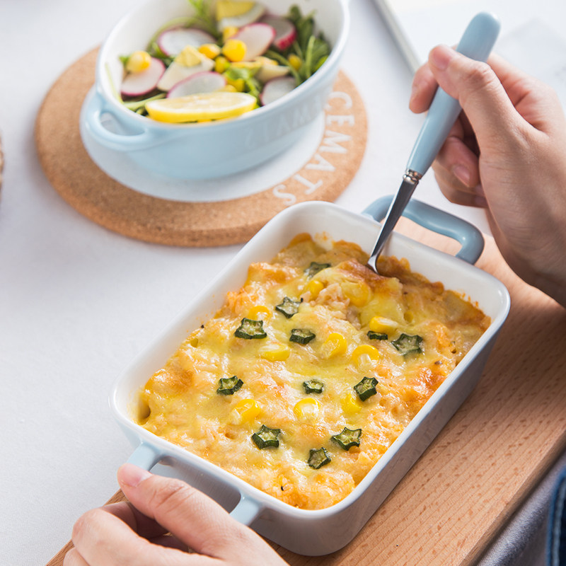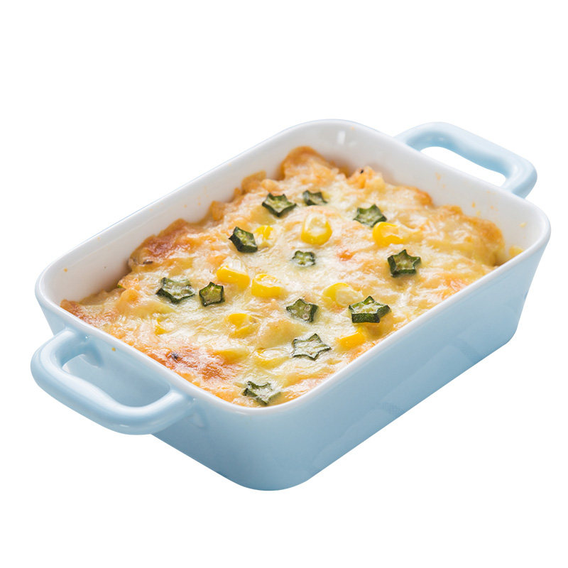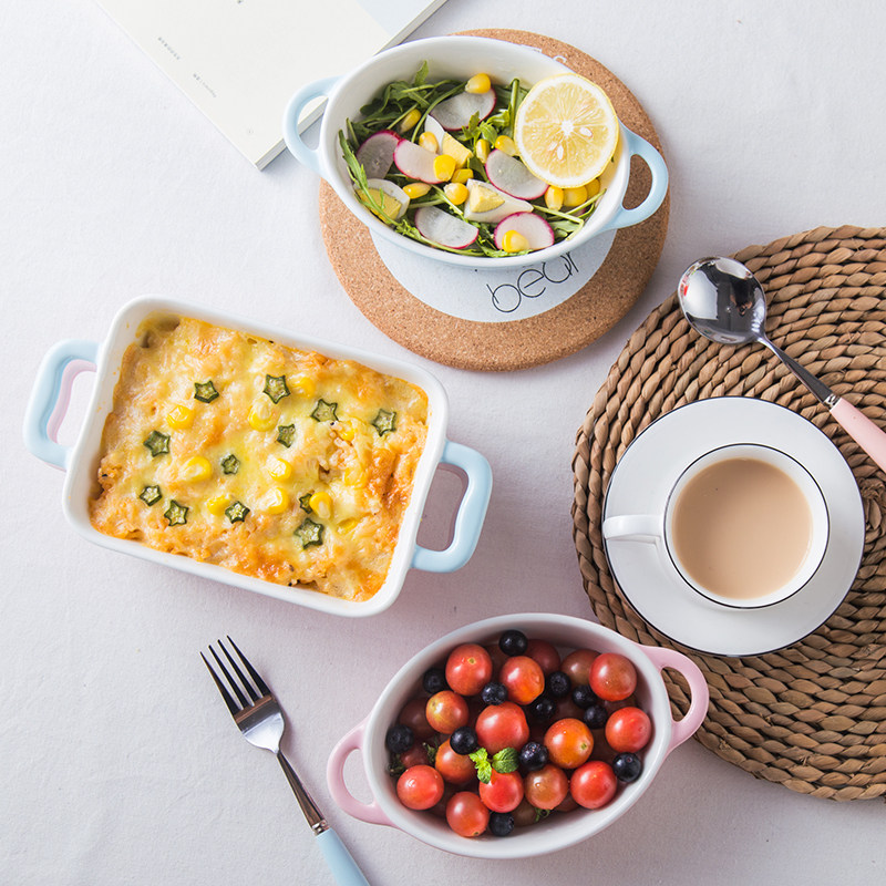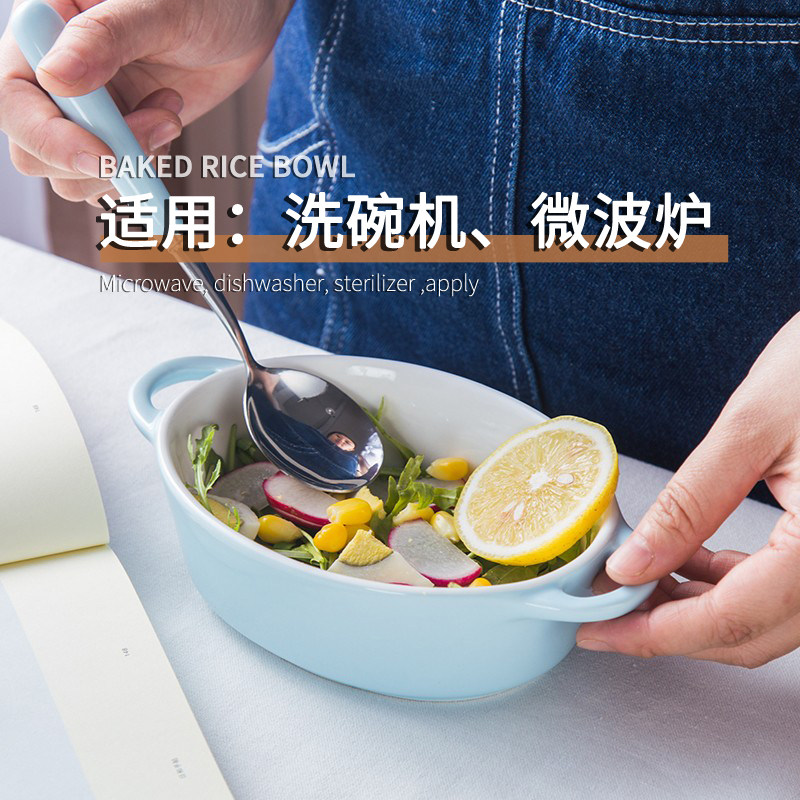 Oven Baked Rice Baking Bowl Creative Ceramic Home Microwave Oven Oven High Temperature Resistant Special Double Ear Baking Cheese Deep Baking Dish