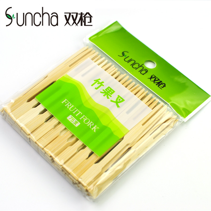 Double Lance Disposable Bamboo Fruit Fork Family Hotel Food Fruit Sign Snack Fork 75 Fitted Fruit Fork Fruit Sign