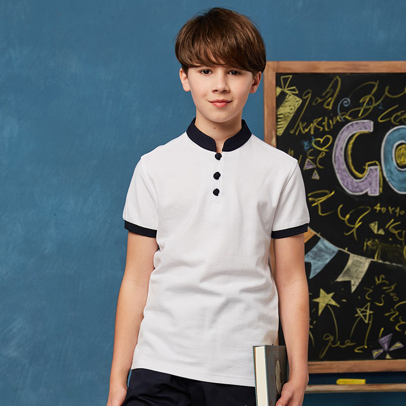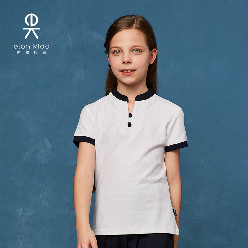 Eaton Kidd School Uniform Summer Boys and Girls Cotton Short Sleeve T-Shirt Chinese Style Standing Student Tops 15t001 15t201