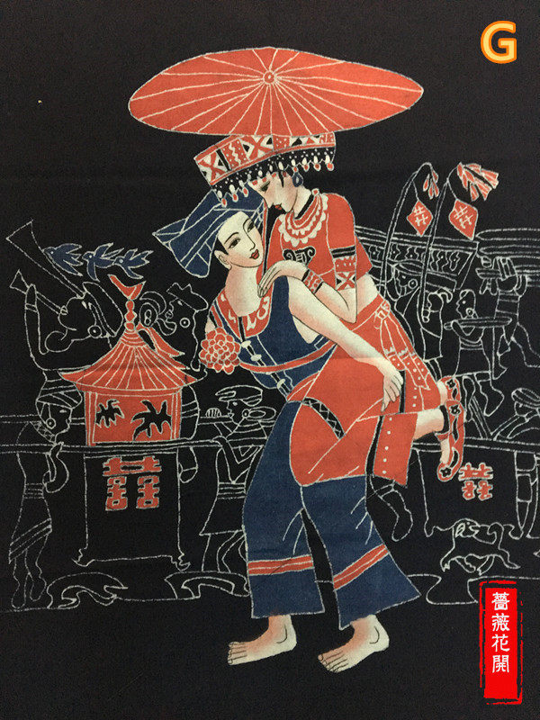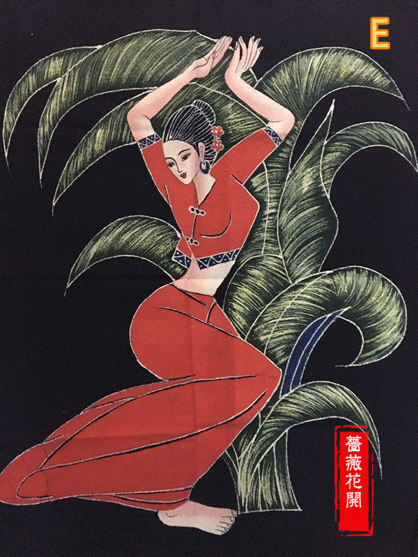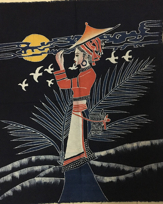 Yunnan Ethnic Wax Dyeing Mural National Figure Dining Room Door Curtain Waxing and Hanging Painting Door Curtain lid cloth 86 * 72cm
