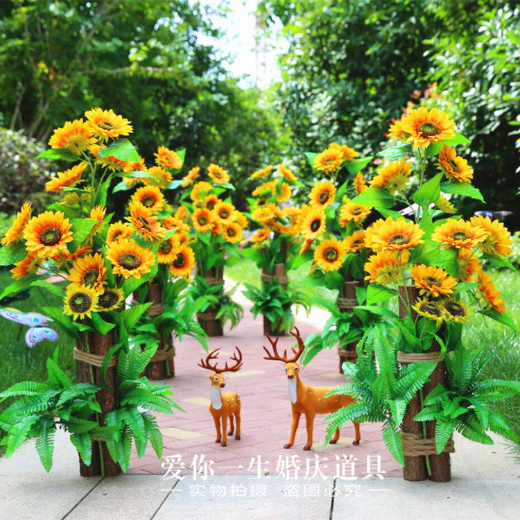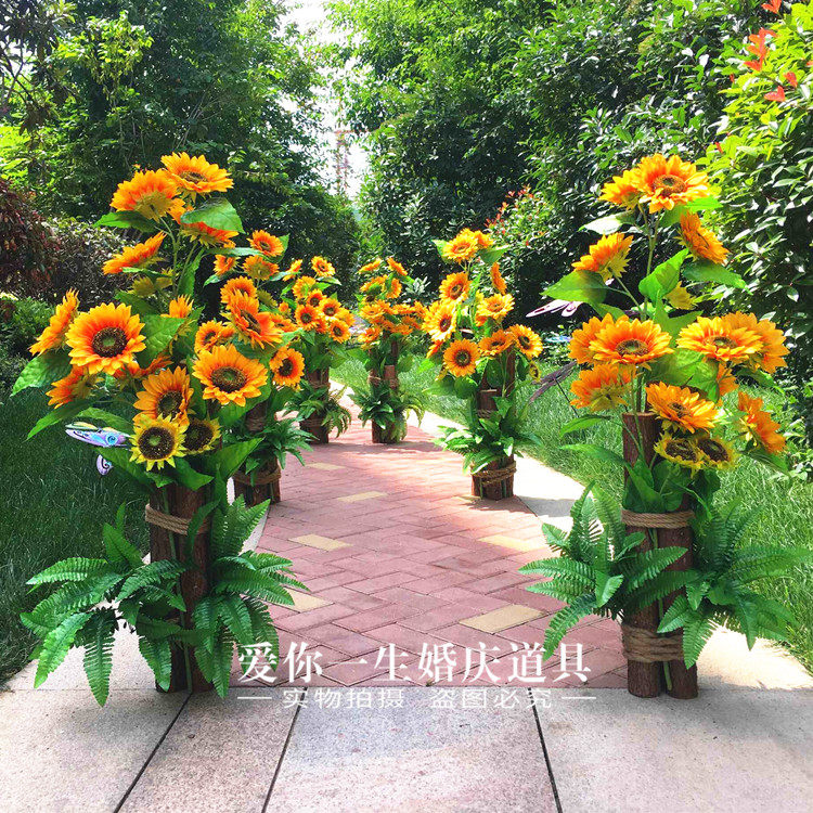 Wedding Gensen Department Props Wedding Celebration Sunflower Sensual Road Leading Wedding Celebration Hemp Rope Wooden Pile Bundled Road Leading Wedding Celebration Road Leading Up To Wedding Ceremony