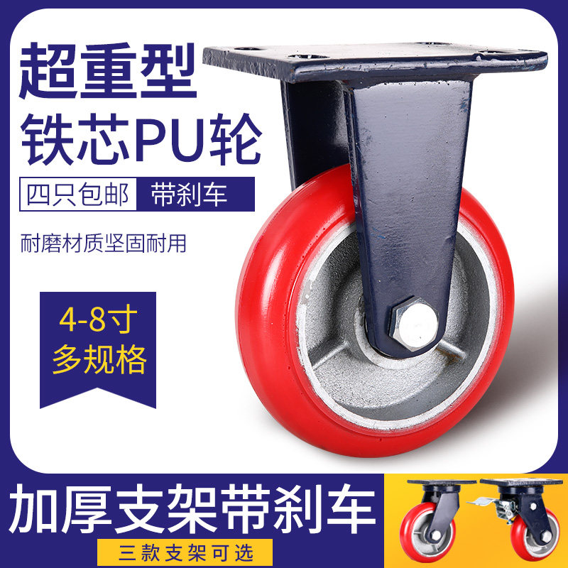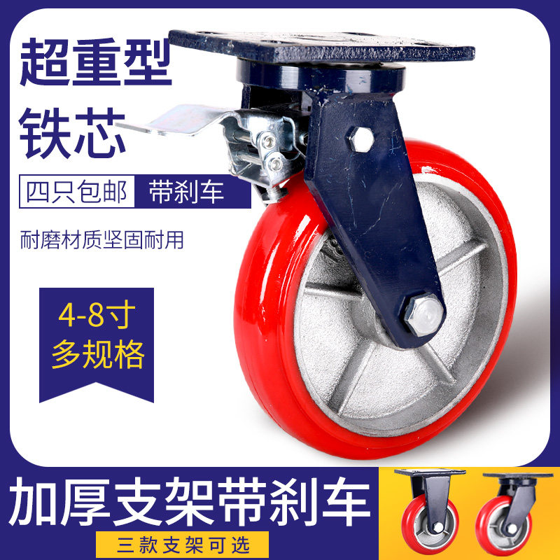 Heavy-duty polyurethane casters 4 inches 5 inches 6 inches 8 inches Korean iron core arc polyurethane universal casters wear-resistant wheels