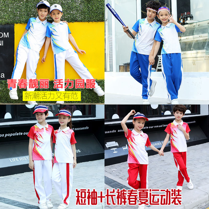 T-shirt (red)T-shirt (blue) two-piece set of long-sleeved trousers Ueda Elementary School customized autumn and winter short-sleeved trousers two-piece set of red short-sleeved five-point pants blue short-sleeved five-point pants Ueda Elementary School customized summer top