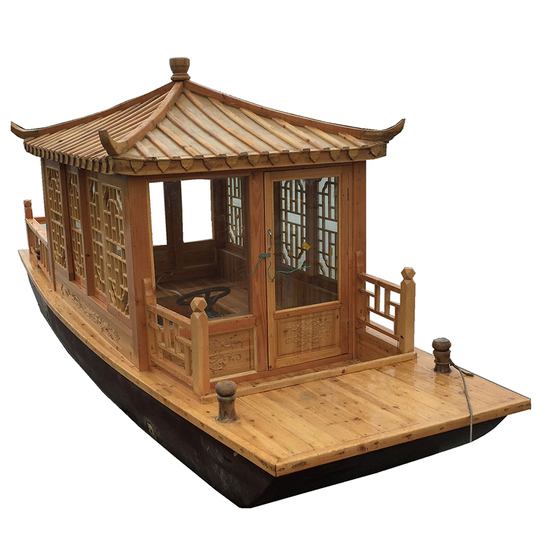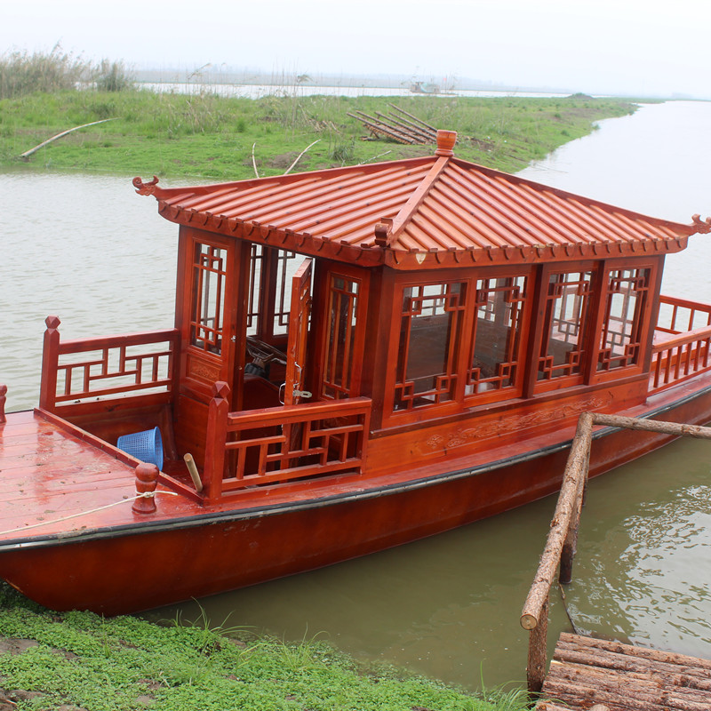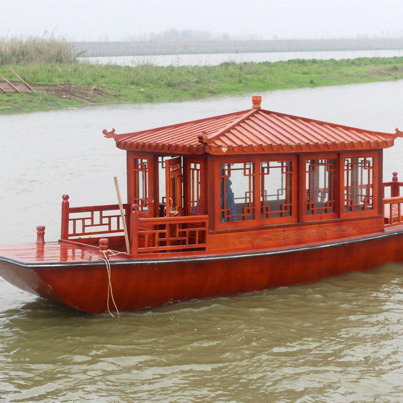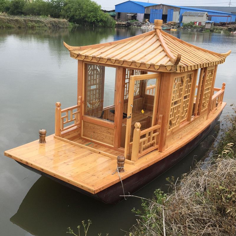 Antique Painting Boat Cruise Portable Water Restaurant Hotel Outdoor Landscape B&B House Barbecue Dining Wooden Boat