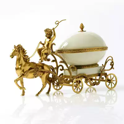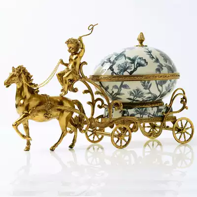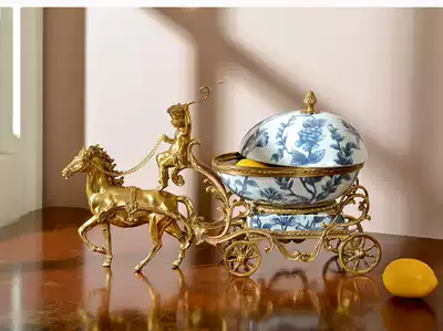 European-style American living room porch creative horse cart high-end luxury ceramic with copper fruit plate jewelry storage box ornaments