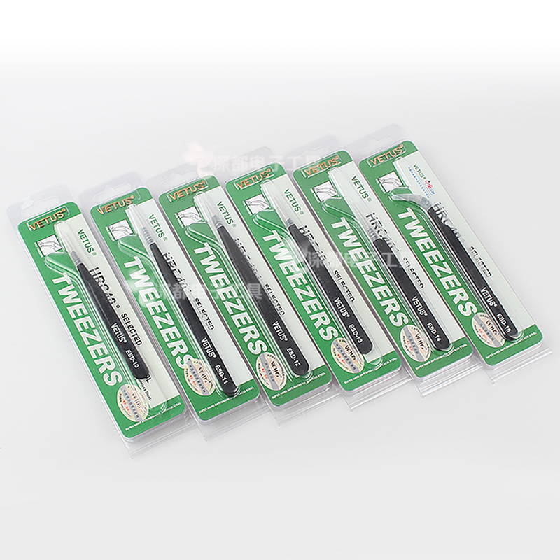 VETUS tweezers stainless steel anti-static precision small pointed long mouth flat head curved insulation tweezers repair thickened st-11