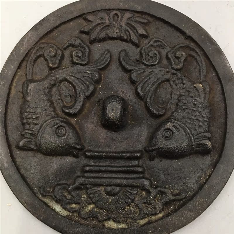 Ancient playing bronze ware collection antique made of old double fish bronze mirror brass bronze mirror black leather bag sizing process fine for years