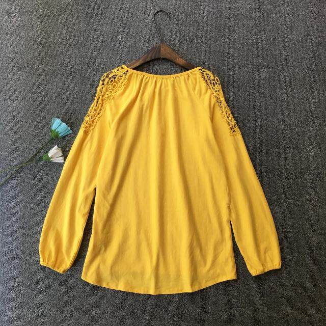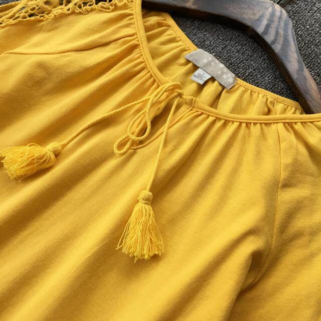 The original dan good goods super soft sweet tassel collar shoulder hollow hook flower loose cotton long-sleeved T-shirt women's t