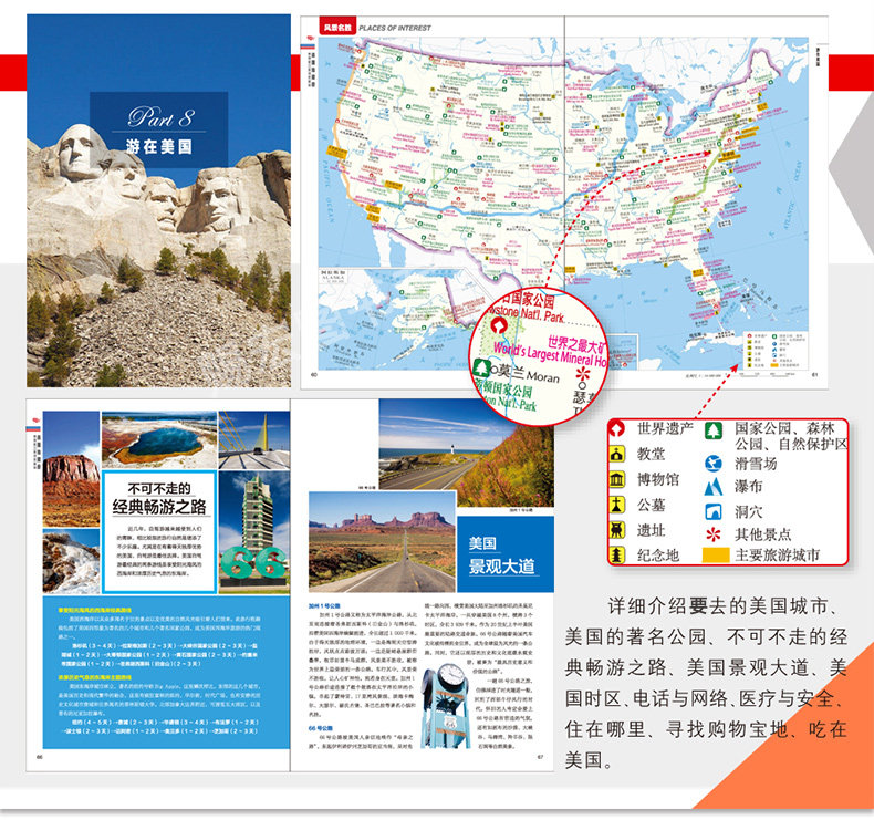Upgraded version of the 2022 new version of the U.S. atlas Chinese text map Chinese and English version of the U.S. sub-state city map transportation tourism national geographic history and culture atlas Chinese map genuine