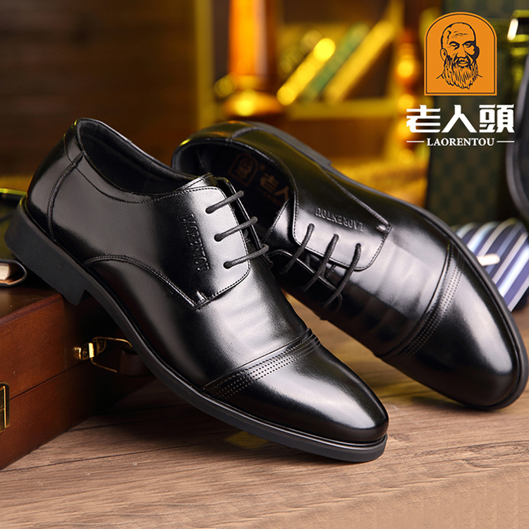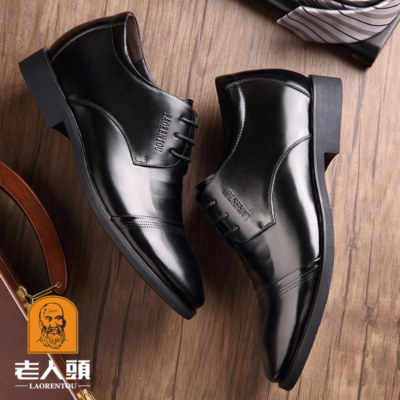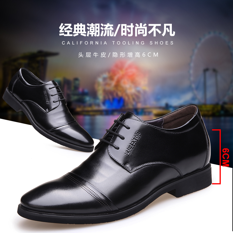 Old man's scalp shoes men increase 6CM leather business formal leather shoes men's breathable pointed toe British men's wedding shoes