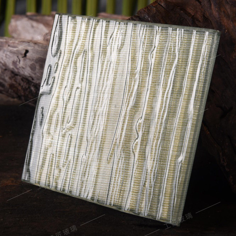 Custom Art Glass Hot Bend Steel Landscape Painting Clip Silk Art Glass Xuanguan Partition Background Wall Fuzhou Craftsman